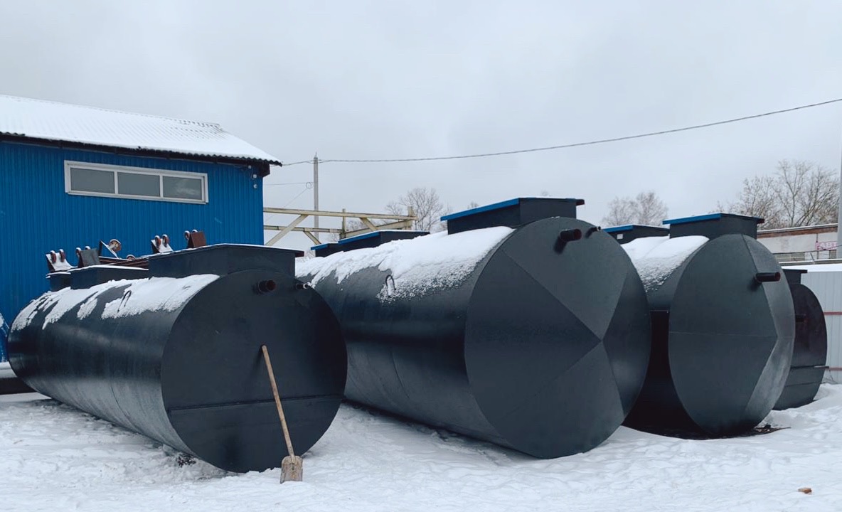 Габариты очистного сооружения: 3 емкости длиной 9800 / диаметром 2400 / весом 17700 кг.