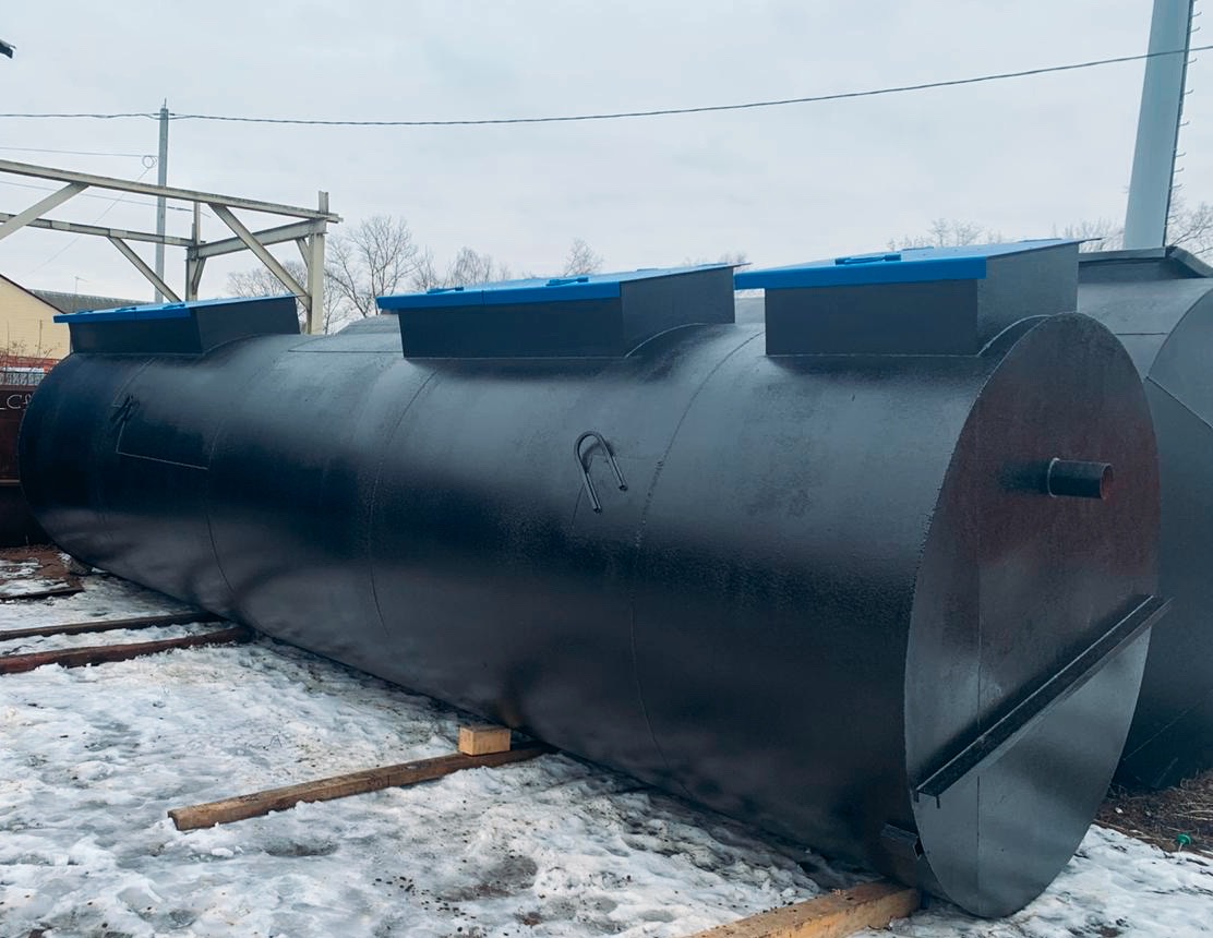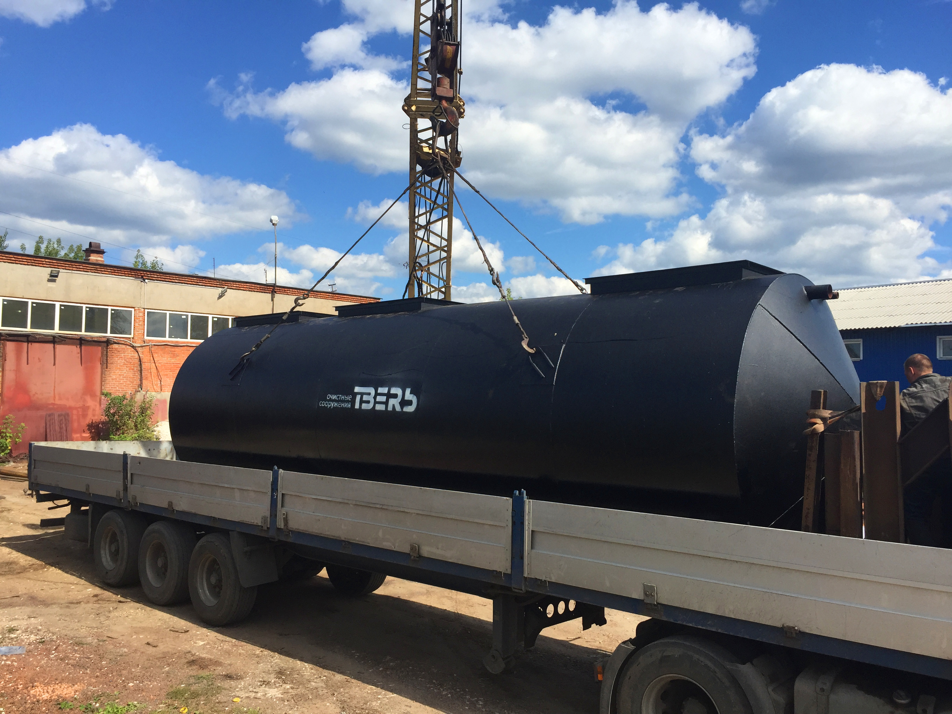 Габариты очистного сооружения: 2 емкости длиной 8400 / диаметром 2400 / весом 9800 кг.